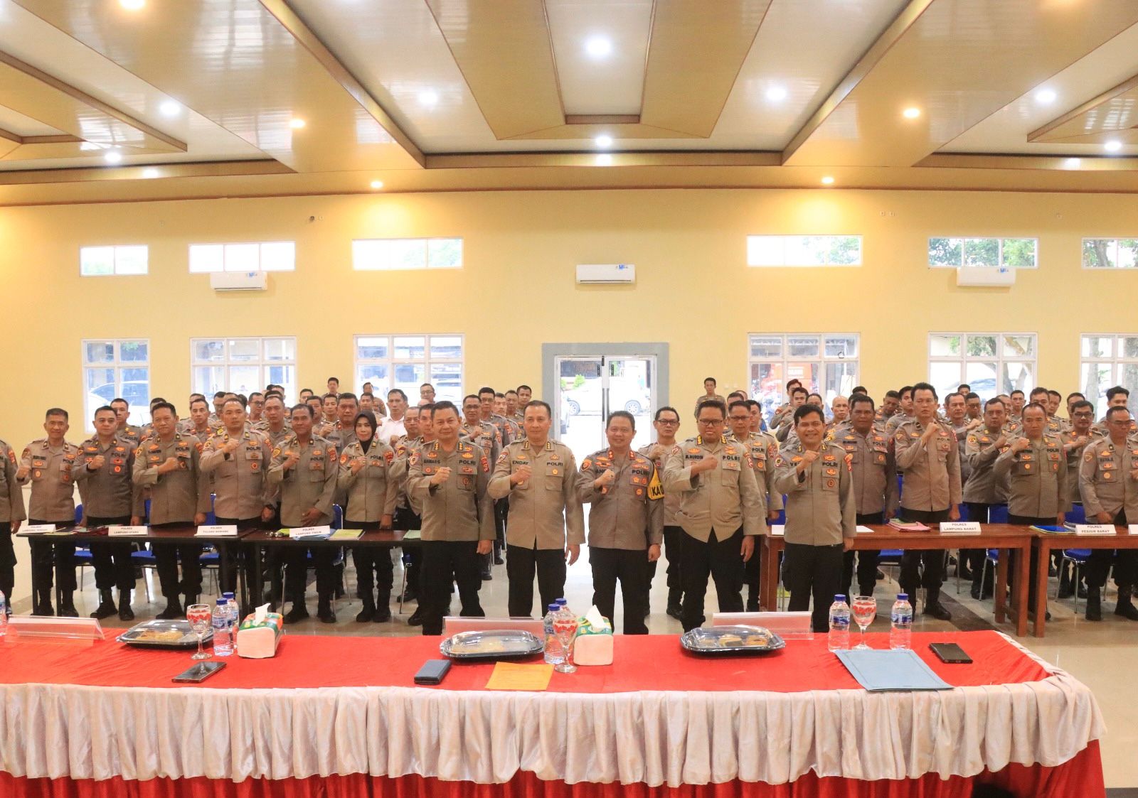 Selain Polres Lampung Tengah sebagai tuan rumah, Monev juga diikuti oleh 9 Polres jajaran Polda Lampung, yakni Polres Way Kanan, Mesuji, Tulang Bawang, Tulang Bawang Barat, Metro, Lampung Timur, Lampung Utara, Lampung Barat dan Pesisir Barat.
